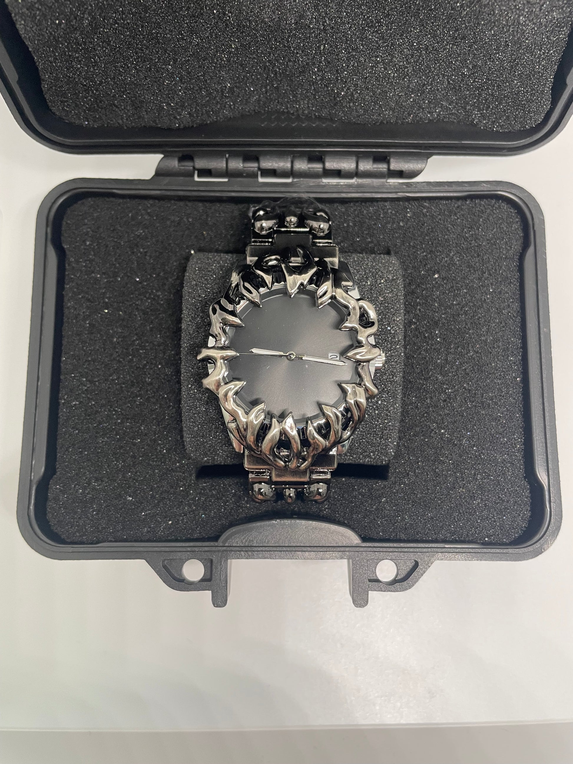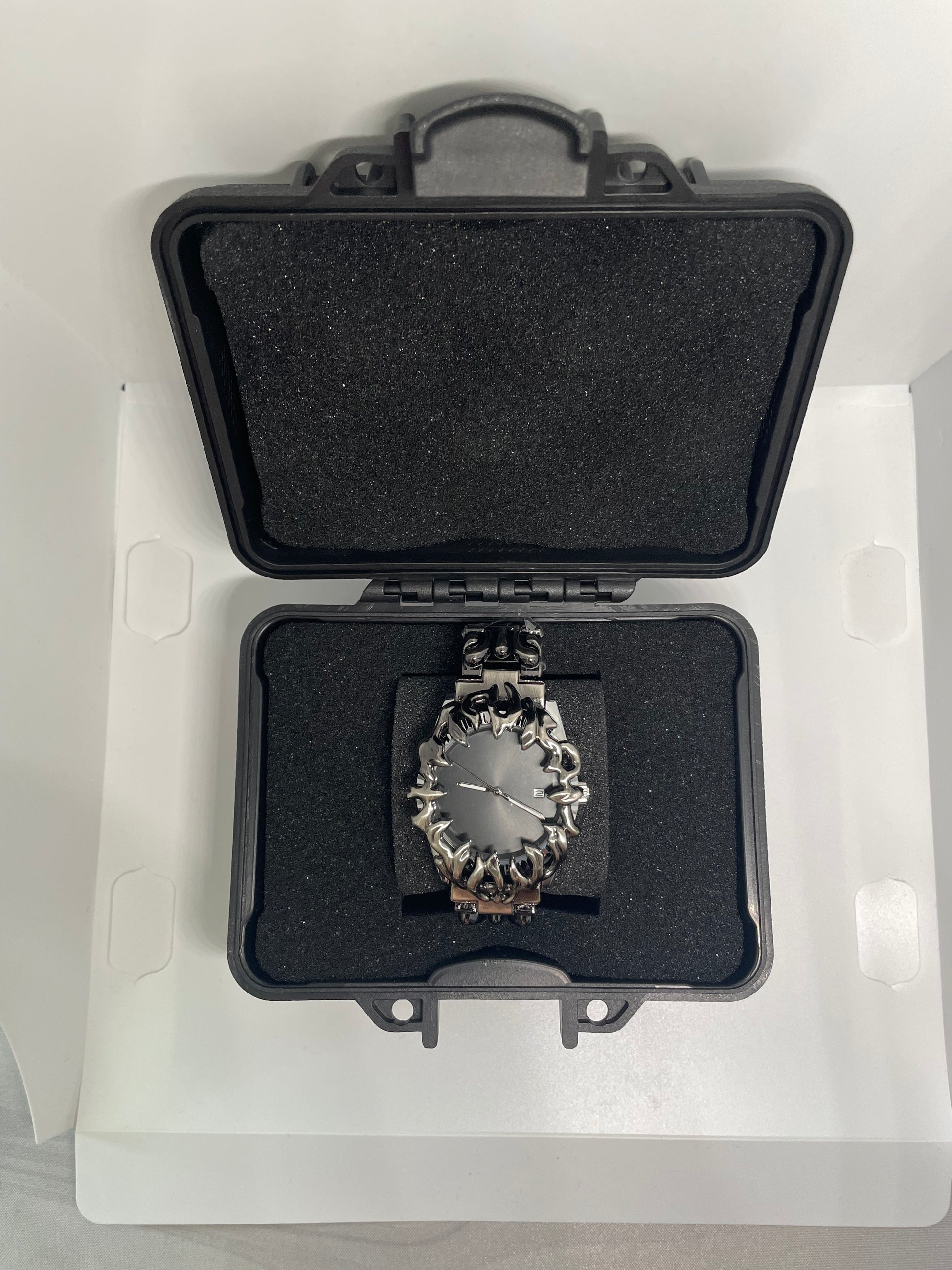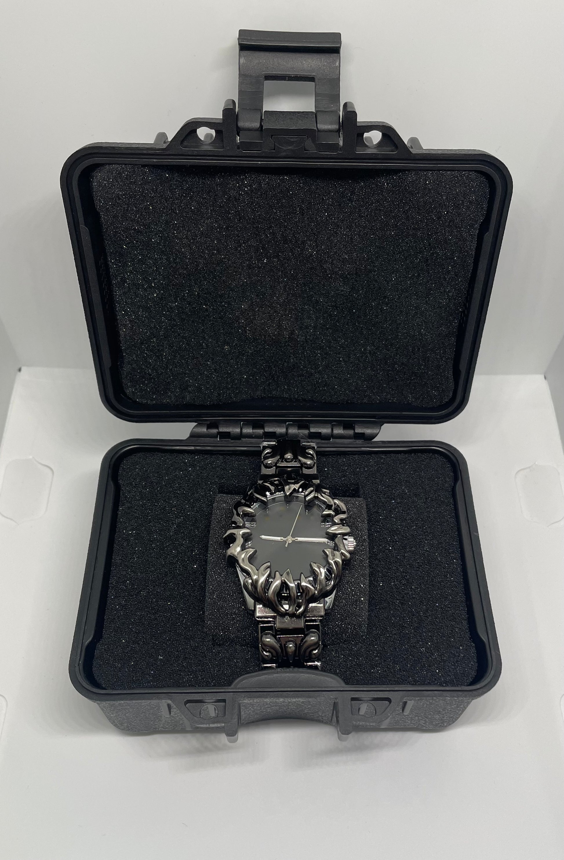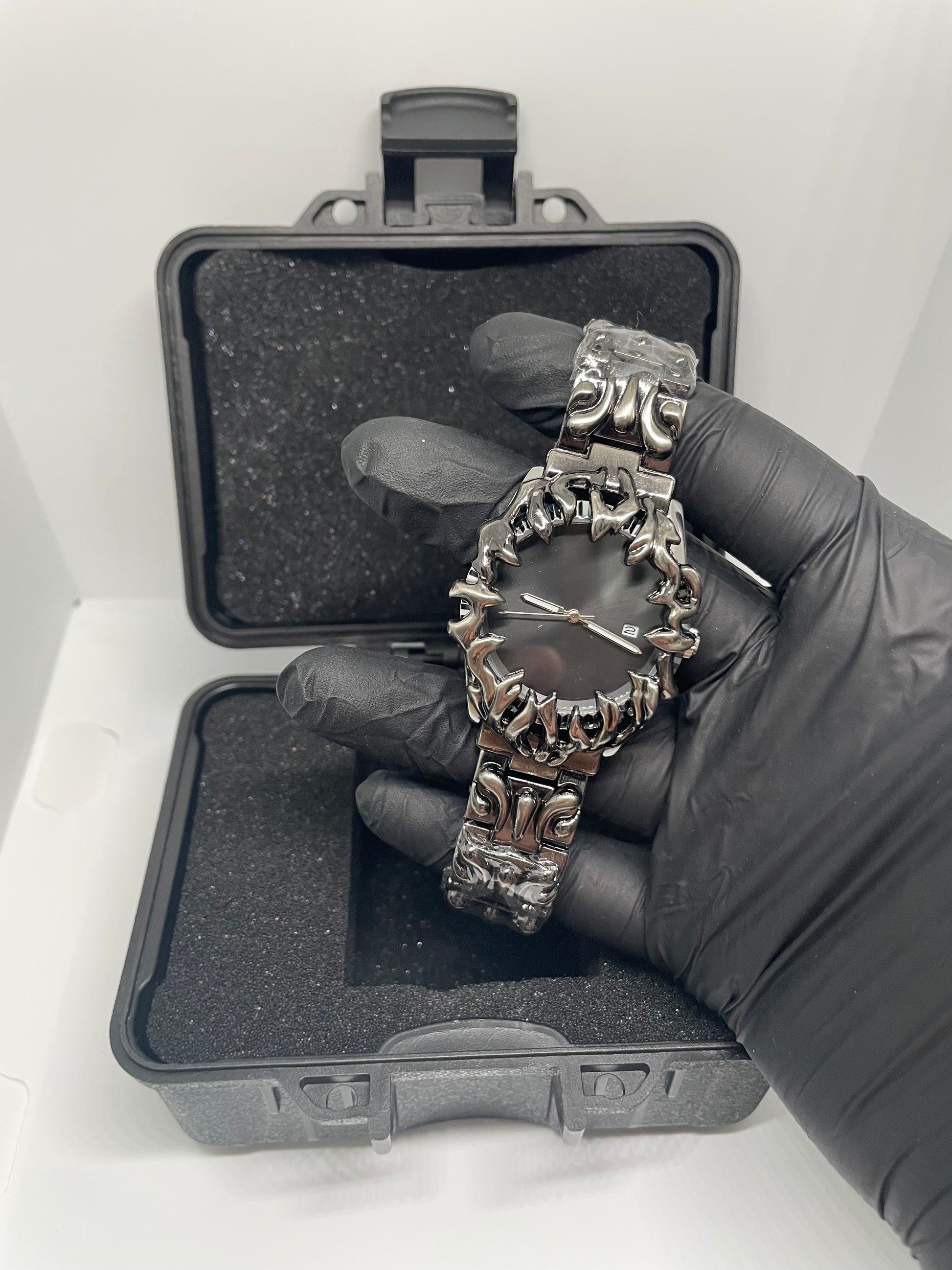 Diese Uhr ist kein Accessoire – sie ist ein Rüstungsstück fürs Handgelenk. Die Gothic Flame Armor Watch vereint brutale Eleganz mit einer düsteren Ästhetik, die an Chrome Hearts, Y2K-Metal und Industrial erinnert.