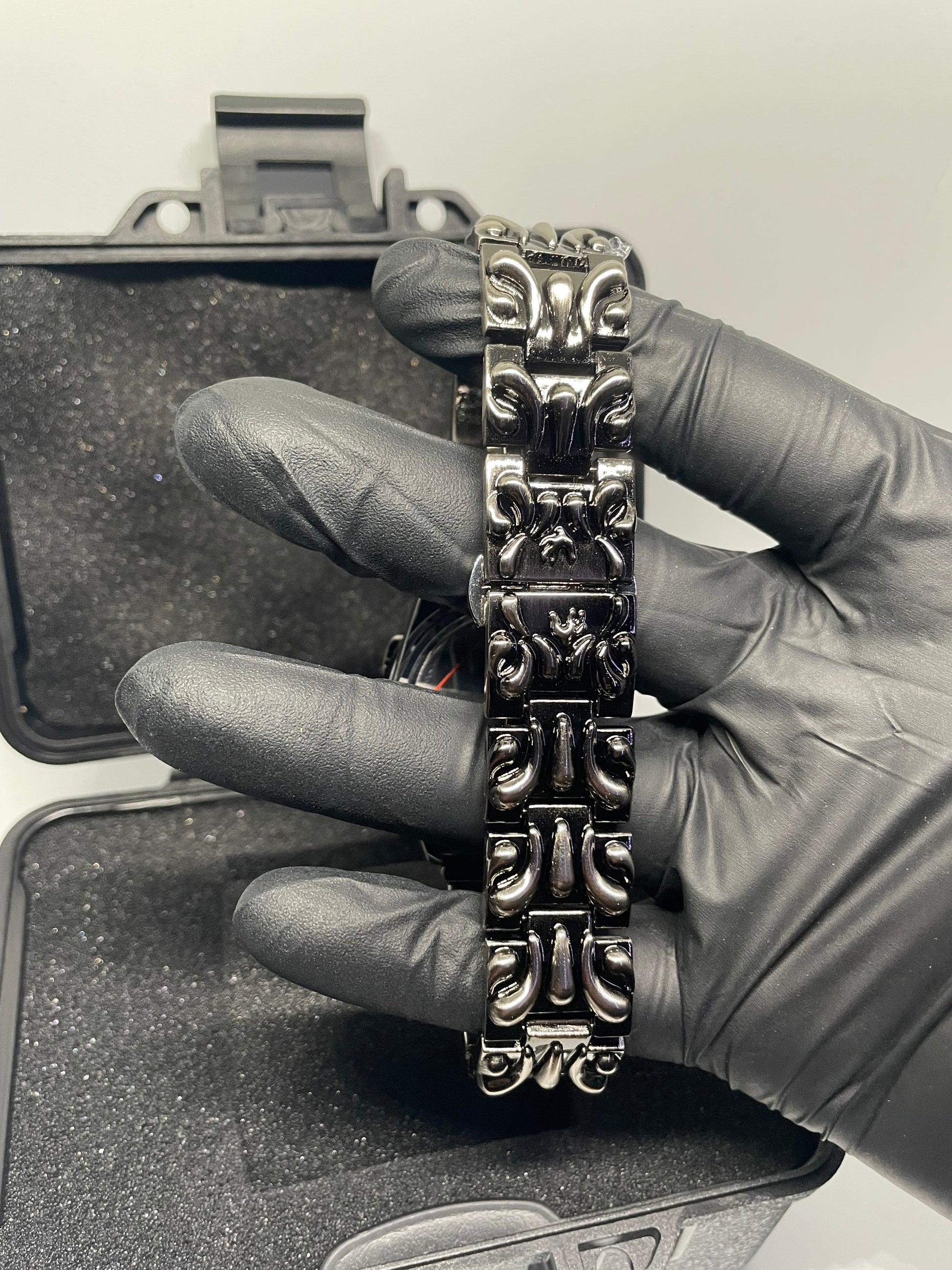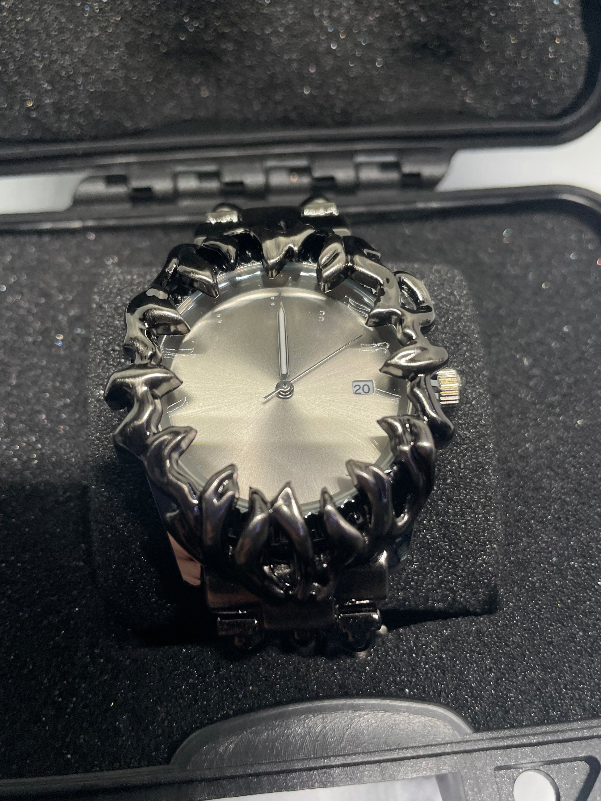 Diese Uhr ist kein Accessoire – sie ist ein Rüstungsstück fürs Handgelenk. Die Gothic Flame Armor Watch vereint brutale Eleganz mit einer düsteren Ästhetik, die an Chrome Hearts, Y2K-Metal und Industrial erinnert.